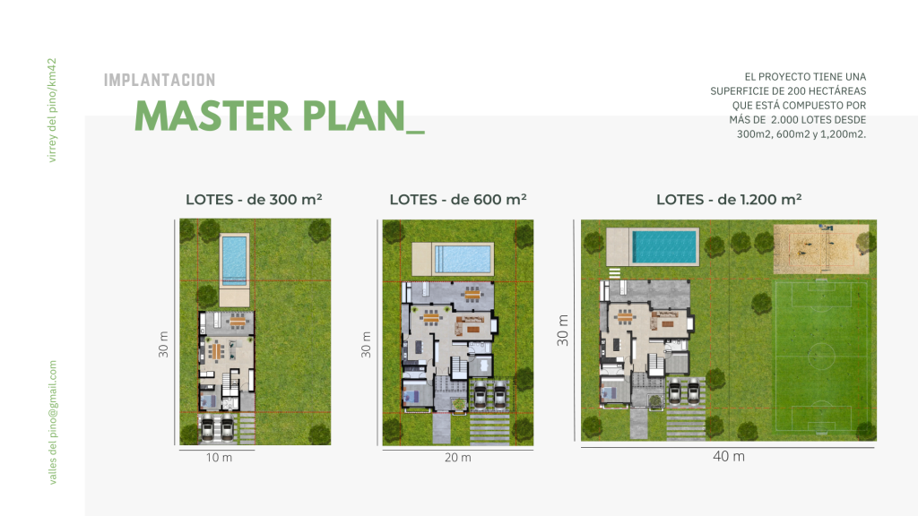 Nuestros lotes están diseñados para ofrecerte el máximo confort y flexibilidad. Todos los terrenos tienen una longitud de 30 metros, y varían en ancho: 10, 20 y 40 metros según el tipo de lote. Observa nuestras renderizaciones y descubre el espacio perfecto para construir tu hogar ideal en un entorno sereno y natural.